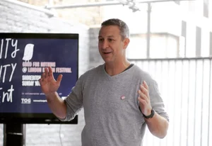 Something is starting to happen. There's a special buzz, a palpable sense of energy in the room. The noise level is rising. On one table in the middle of the room there's a highly experienced cancer research scientist from Southampton University called Kevin in his late 50s sat in front of an old laptop. He’s showing a small group of hipster-looking designers, communicators and technologists how he analyses and classifies cancer research tumours.